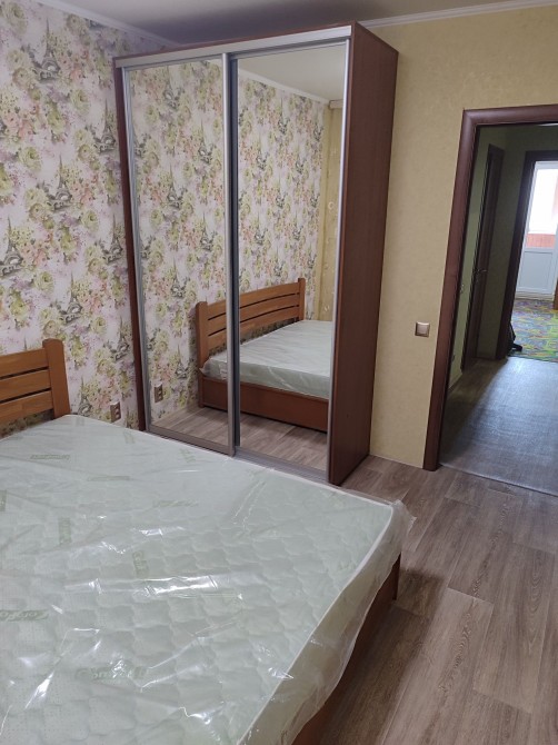 Большие зеркальные шкафы - купе, двухспальная кровать с новым ортопедическим матрасом, диван, компьютерный стол, на кухне вся мебель и техника
