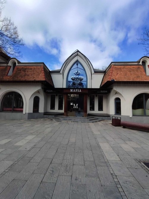 Общая площадь 580 кв.м, два этажа + подвал. Цена аренды 90000 грн в месяц. В настоящее время там находится действующий ресторан Мафия. Цена аренды без оборудования, мебели, кухни и т.д.