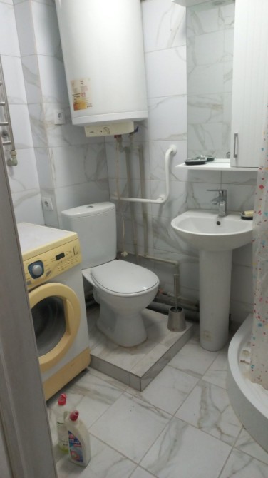 Квартирв в хорошем состоянии. Улица Новозаводскся -8. Пятый этаж девятиэтажного дома. Есть бойлер, стиральная машина и холодильник. Шкаф и пара тумб, с телевизором..