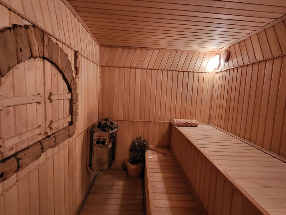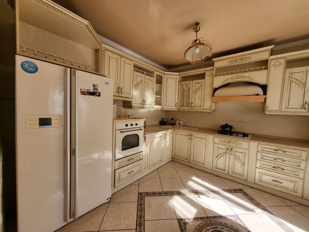 В доме большая кухня - столовая, 3 раздельные спальни, в цокольном этаже -сауна,подвал.