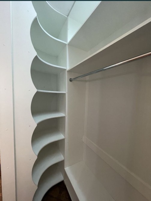 Большие гардеробные. В каждой комнате по широкому, просторному шкафу