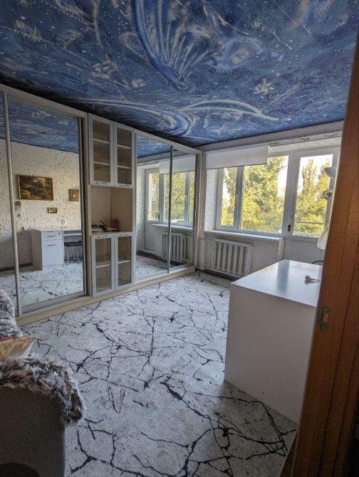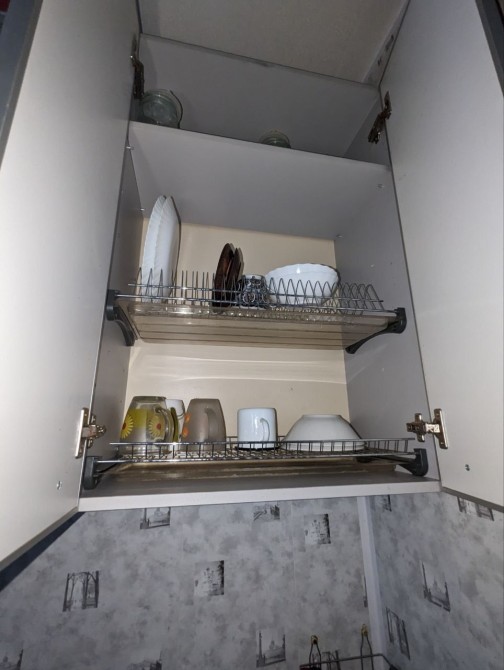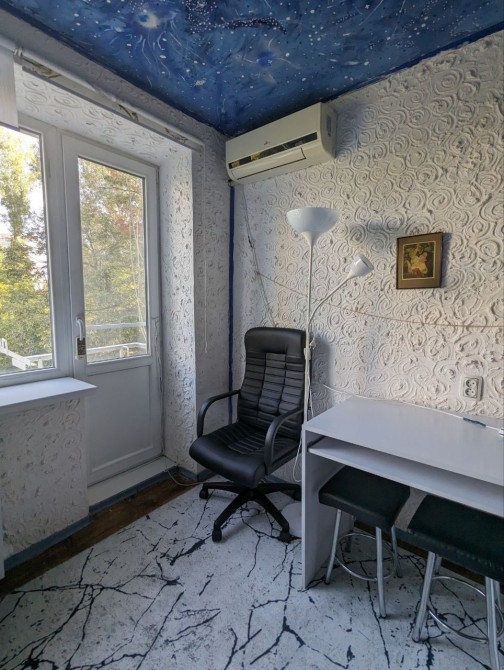 Квартира очень уютная, она небольшая и очень компактная. Окна выходят во двор, это не фасадный дом, он расположен внутри домом, в плане безопасности это огромный плюс, окна выходят на зелёную зону, рядом есть убежище, если нет света будет отопление, газ, и вода, горячая вода от бойлера. Лифт не работает если нет света.