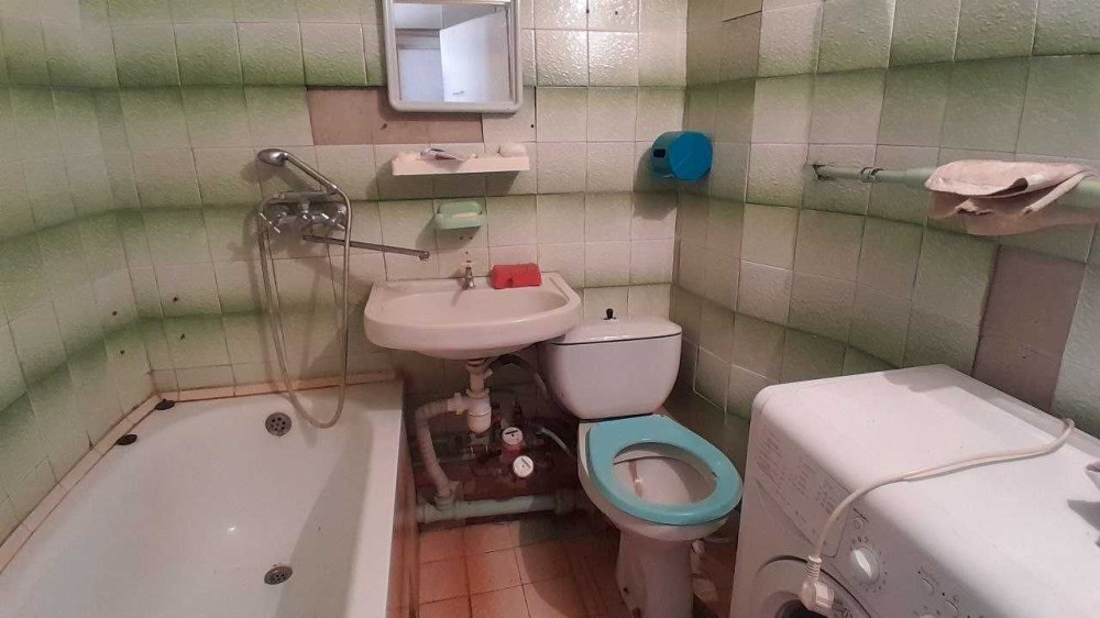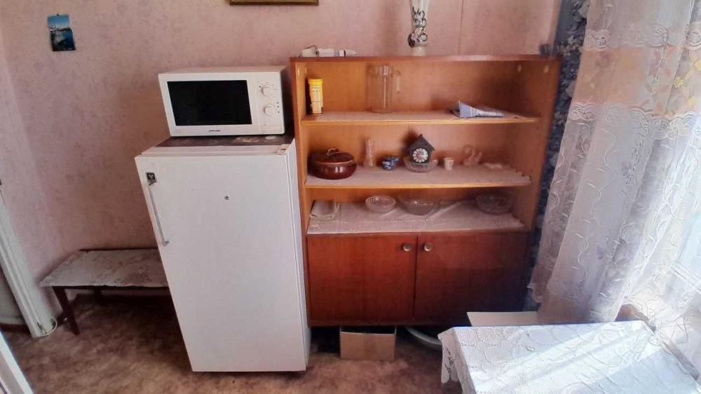 Есть вся необходимая мебель: диван, шкаф, кухня и техника – стиралка-автомат, холодильник, микроволновка.