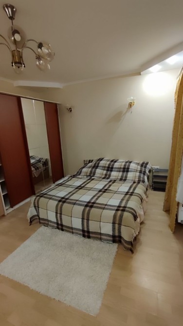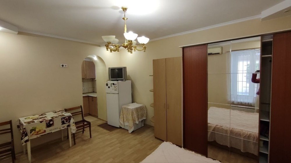 1/3 этажного дома, общая 30 кв.м., комната 16 кв.м., кухня 6 кв.м., в комнате двуспальная кровать, шкаф купе, кондиционер, отопление двухконтурный котёл.
