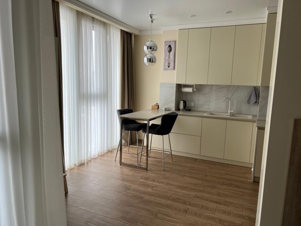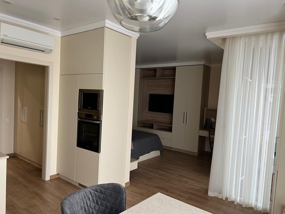 Сдается стильная 1-к квартира (48 м²) на 17 этаже в престижном ЖК бизнес-класса «Новодворянский» (р-н Парка Шевченко). Внутри выполнен качественный ремонт, пространство грамотно зонировано на уютную спальню, кухню-гостиную и рабочую зону. Квартира полностью укомплектована современной техникой и мебелью, включая кондиционер, бойлер и вместительные системы хранения. Предложение для порядочных арендаторов на длительный срок, строго без домашних животных.