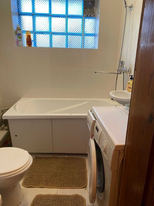 Квартира чистая,светлая,второй этаж,Кухня -гостинная большая с холодильником и газовой плитой.В кухне есть диван кровать.В спальне двухспальная кровать,Ванна и стиральная машина есть.Отопление АГВ,,