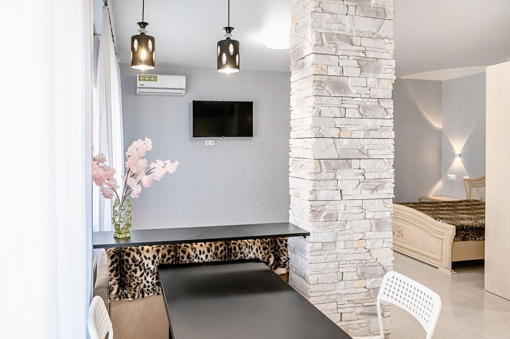 В квартире есть вся бытовая техника, включая кондиционер и телевизор.