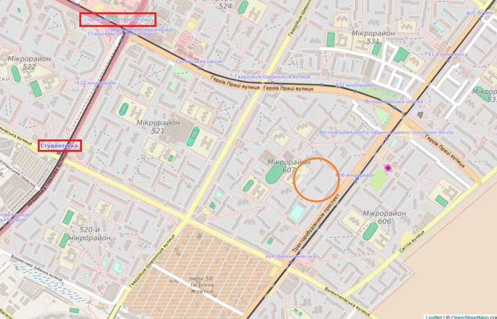 Ст. метро Студенческая – около 10 мин. на транспорте.