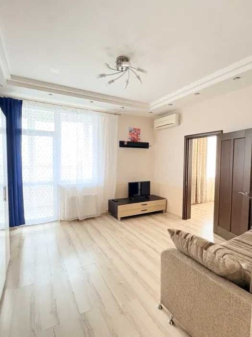 2 комнаты (смежные) +Просторная кухня, лоджия, вид на город. Гардеробная, в сан.узле ванна, техника, духовка, кондиционеры. Квартира в светлых тонах.