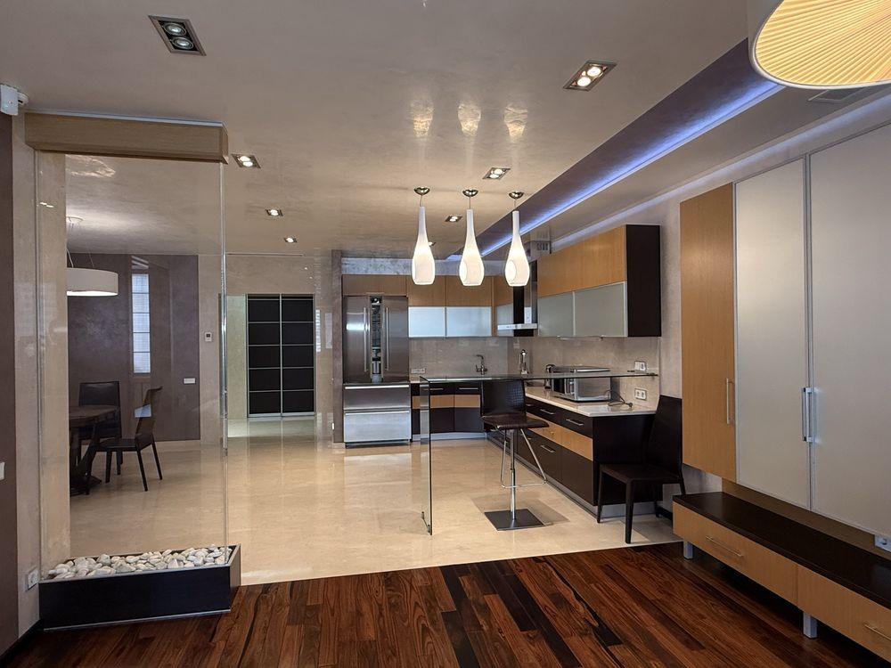 Квартира повністю укомплектована меблями та технікою, виконано якісний авторський ремонт із використанням дорогих матеріалів.