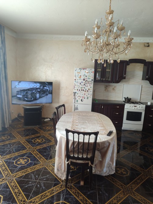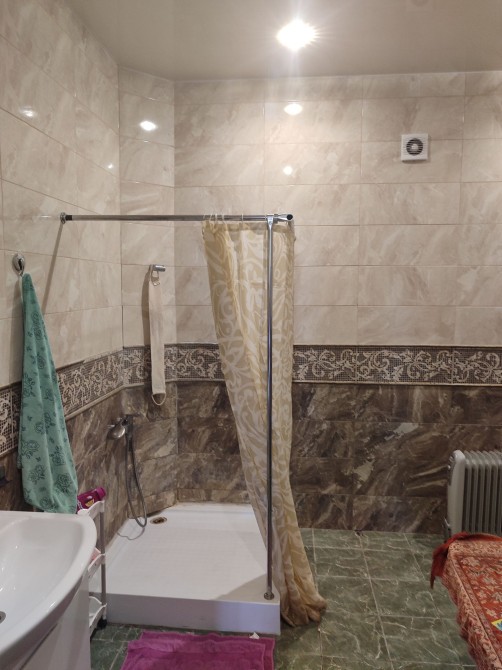 Первый этаж- кухня, спальня( живет хазяйка), душ, туалет.