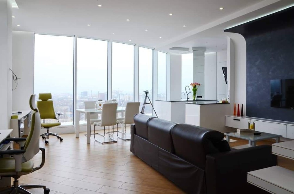 • Комфорт Кондиционер, Подогрев полов, Ванна, Душевая кабина, Мебель на кухне, Гардероб, Терраса, Панорамные окна, Сигнализация, Пожарная сигнализация, Видеонаблюдение, Консъерж, Охраняемая территория, Парковочное место, Гостевой паркинг, Подземный паркинг, Лифт, Грузовой лифт, Автономный электрогенератор