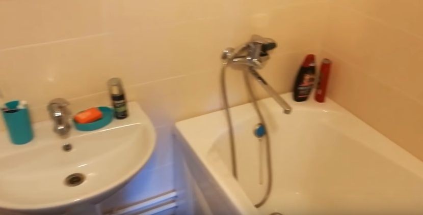 Установлена колонка, есть достаточно посадочных мест, рассчитана квартира на 4-7 человек, есть стиральная машина--автомат,холодильник,телевизор- плазма.