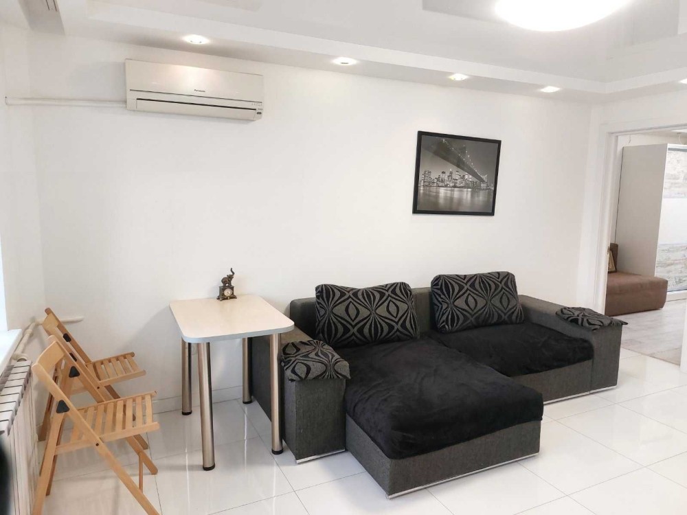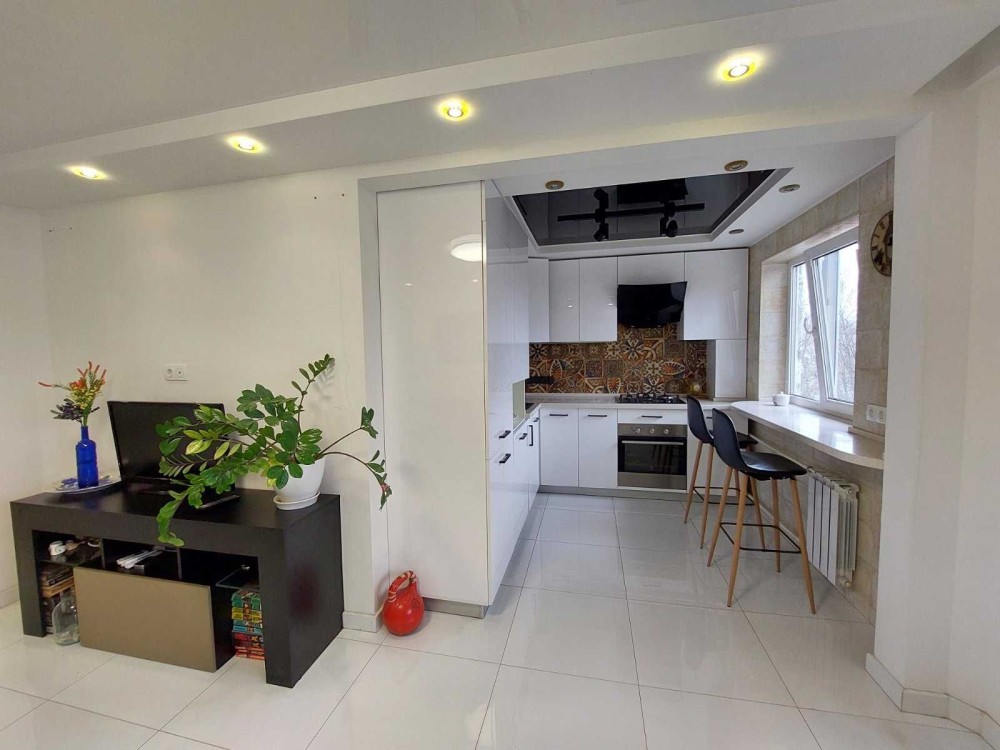 Квартира с шикарным евроремонтом. Формат: просторная кухня-студия и две раздельные спальни.