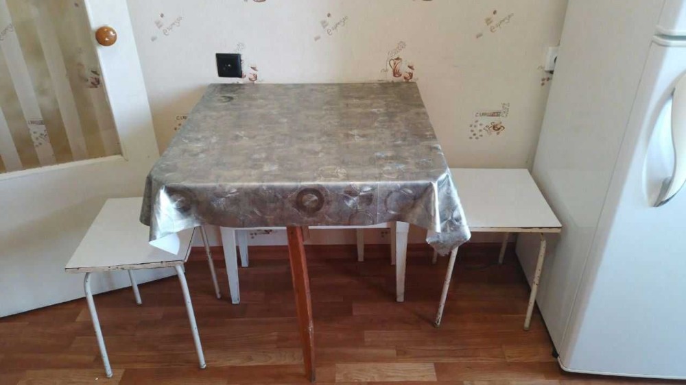 Есть большой угловой диван + гостевой диван,шкаф,2 кресла,тумбочка под ТВ,современная встроенная кухня + обеденный стол + стулья.