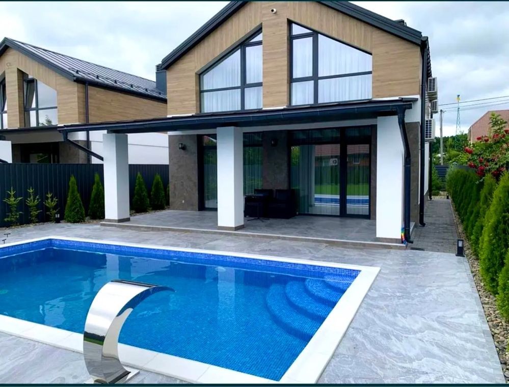 Котедж, 2 поверхи, 3 кімнати. Площа ділянки 6 соток. Планування кімнат Роздільне. У будинку є Телевізор, Кабельне ТБ, Підігрів підлоги, Кондиціонер, Пральна машина, Душова кабіна, Ванна, Холодильник, Мікрохвильовка, Посудомийна машина, Посуд, Сигналізація, Автополив, Газон, Сад/город, Зона мангалу, Тераса, Бесідка, Басейн. Будинок побудований в 2022 році. Загальний стан будинку - З ремонтом. Працює без світла - вода, газ, опалення, інтернет, резервне живлення (акумулятори/генератор)