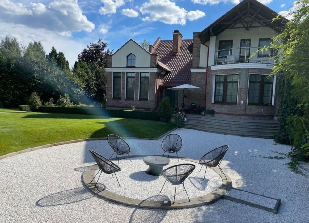 Конча заспа, дамба Дніпрова хвиля вихід на Дніпро. Оренда 6500 $на місяць, Добротний стильний будинок якісний ремонт, дорогі меблі ручної роботи від провідних студій США, Італії та України. Техніка Gaggenau/Milie. Фантастичний ландшафтний дизайн, безліч сонячних і затінених терас, патіо. Все відповідає найвищим стандартам проживання. Дуже зручне планування, - окремо дитячий блок, дві спальні санвузол і гардероб, окремо батьківський блок - спальня, санвузол, гардероб-спортзал, окремо житлова зона - величезна кухня зоною для сніданків, столова, в їдальня з каміном та кабінет. Звісно, генератор 25 кВ, гараж, гостьовий будиночок та баня на дровах на Дніпрі.