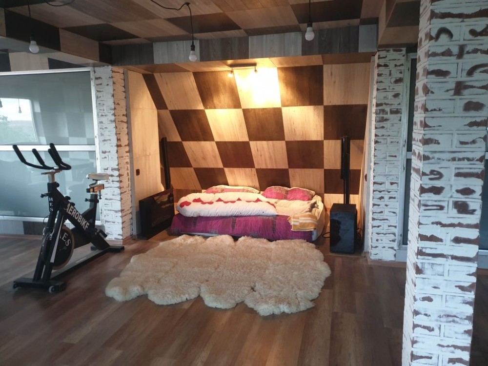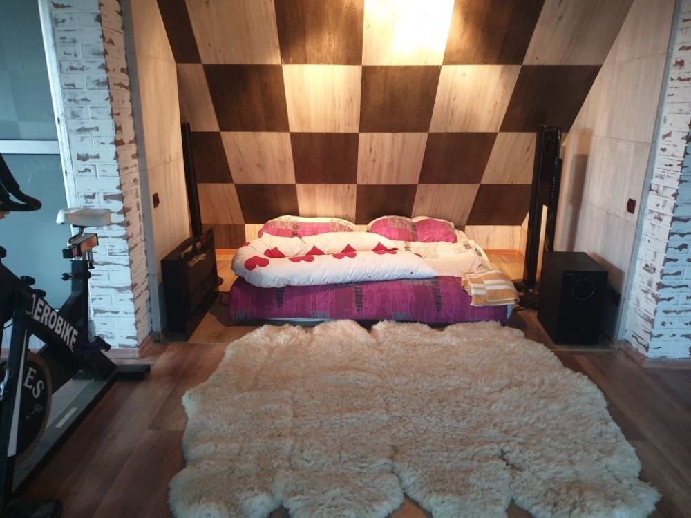 Село Забуччя. 13 км від КП по Житомирській трасі, 19 км від автост.Дачна. 4 км до ЖК Синергія (Ірпінь), 7 км до Бучі. Будинок має 6 кімнат (4 спальні), 2 зали, 4 санвузла, душова. Асфальтований під'Їзд.Будинок під охороною, камери відеоспостереження. Ділянка: Ландшафтний дизайн,басейн, автополив. Відкрита тераса з барбекю. Будинок має мансарду та цокольний поверх. На першому- хол та кухня-студіо, санвузол, туалет та гараж 35 кв.м.. На другому спальня та двоповерховий кабінет, який можно облаштувати під спальню. На третьому кабінет, спальня з санвузлом. Останній поверх- мансарда з санвузлом. На цокольному поверсі велика кімната( під спортзал)де є бігова доріжка, пральна, сауна,душова, техприміщення та 2 кімнати-кладові. На другому поверсі відкрита велика тераса, на третьому балкон. Підлога, керамограніт, плитка, ламінат. Газове опалення, підігрів підлоги на декількох поверхах. камін, сауна. 3 кондіціонера, газовий котел та електроболер. Інтернет оптоволокно.
