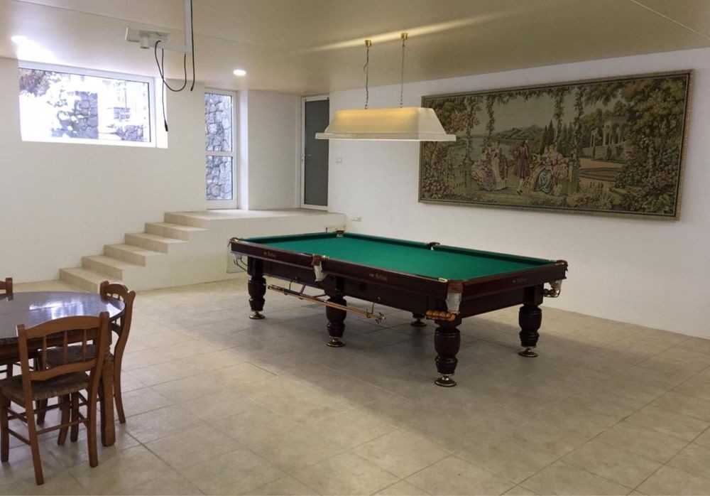 Описание: Гостиная с камином, кухня с зоной столовой, кабинет, 3 спальни с с/у, бильярдная, бассейн, сауна, гараж на 2 машины