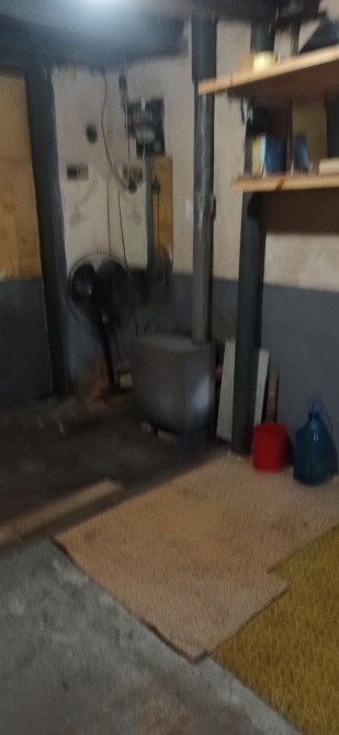 Гараж 6,75м - 3, 50м ворота 2,6м - 2,05м По периметру полки. По длине входит машина и поперек прицеп. Заезд по пропускам + видио наблюдение. Обогрев печка из метала.
