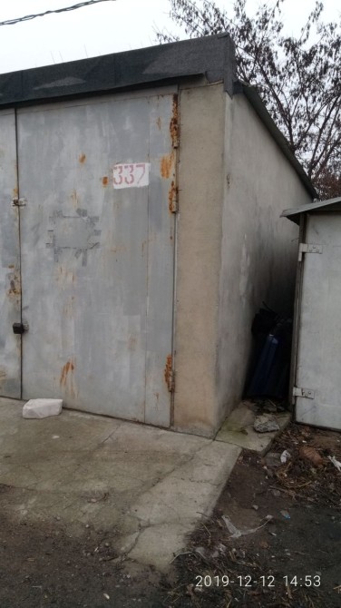 Металевий, підлога бетонна, утеплений керамзитом, є електрика. Великий погріб: 2 приміщення + прохід. Територія охороняється, вивозиться сміття, є естакада. Від власника. Торг.