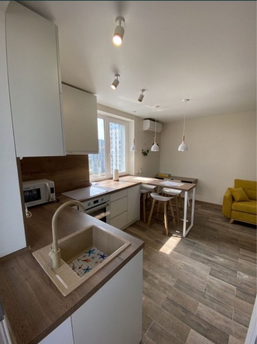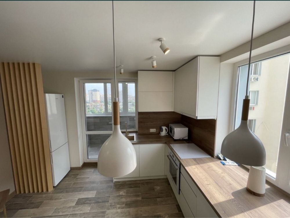 Перша здача. Пропонується в оренду сучасна квартира в новобудові біля м. Житомирська (Берестейський пр-т, 131а). В будинку є генератор (завжди є опалення, вода та працює ліфт). Квартира укомплектована всіма необхідними меблями та технікою. У кімнаті - двоспальне ліжко, розкладний диван, письмовий стіл, кондиціонер, телевізор, велика шафа для одягу. Санвузол суміщений, душова кабінка. Тихий двір, велика парковка. До метро Житомирська - 10 хвилин пішки. Вартість 16000 грн. Умови оренди: оплата за два місяці та послуги рієлтора (50%).
