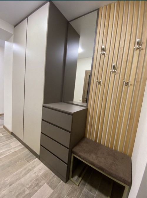 Светильники, матрас на кровать, шкафы, декор, посуда все подобрано в одном стиле