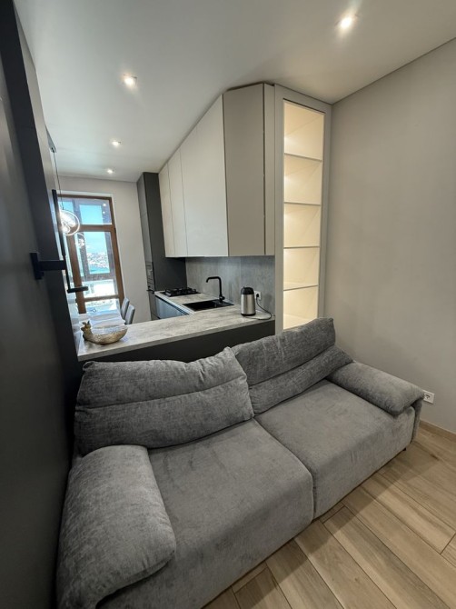 Стильная укомплектованная квартира,с грамотно продуманным дизайном.Кухня,зона гостиной и спальня,Большой совмещенный санузел.Просторный балкон