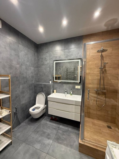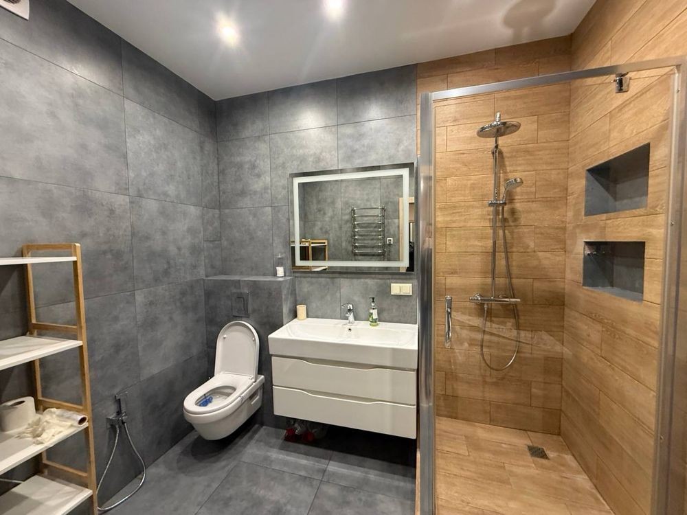 Укомплектована полностью для комфортного проживания :WiFi, Smart TV, фен , утюг , холодильник , кондиционер зима лето, индукционная плита , микроволновая печь , духовка , стиральная машина , душевая кабина,