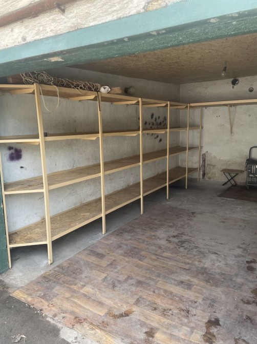 Есть яма, стеллажи, свет, розетки.