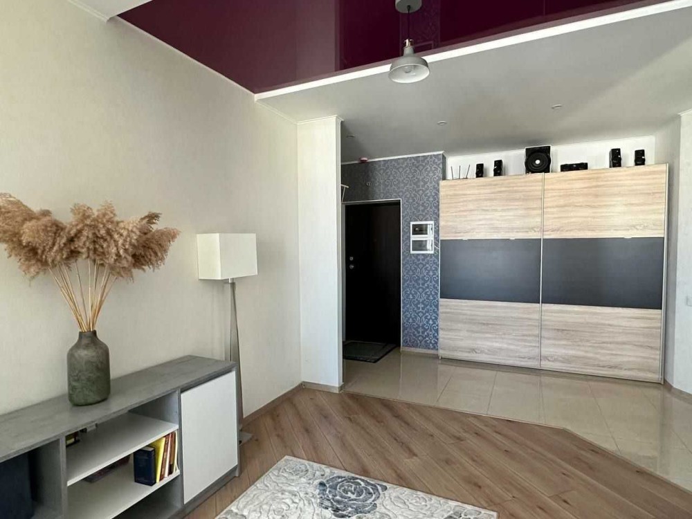 возле Супермаркета"Варус" Квартира расположена на 10 этаже/13-ти этажного дома,по планировке: кухня - студия + зона спальни,общая площадь 40 м.Сделан хороший - современный ремонт,есть вся необходимая мебель и бытовая техника.Двуспальная кровать,вместительный шкаф - купе,комод,тумбочка,встроенная кухня + обеденный стол + стулья.Стиральная машинка автомат,бойлер,холодильник,плазменный телевизор,варочная панель + духовой шкаф + вытяжка,кондиционер.На полу ламинат и кафель,туалет/ванна - облицовка плиткой,мп-окна,застекленный балкон,бронированные двери.