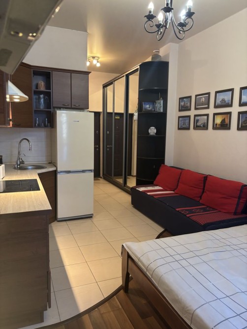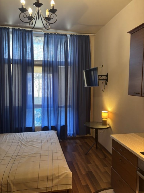 В Аркадиевском переулке 9/1 / Посмитного , сдается в аренду 1 комнатная квартира - студия ) , на первом этаже , 13 этажного дома , с мебелью и бытовой техникой , на длительный срок . Дом кирпичный , ремонт.