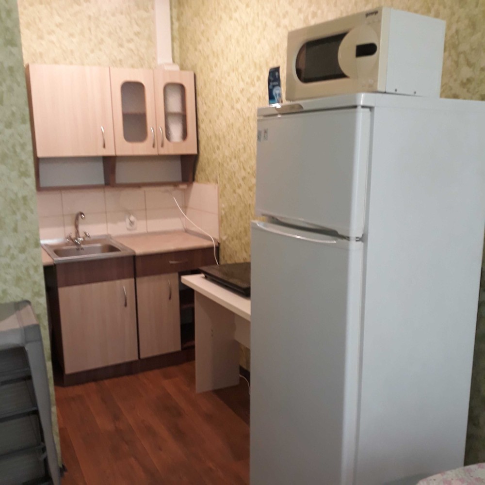 В квартире есть встроенная кухня, холодильник, микроволновка.