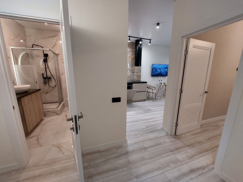 стильная евро-двушка площ 46 м с Балконом и Гардеробной на 12эт /27 эт ЖК АТМОСФЕРА - ЦЕНТР АРКАДИИ - Курортный переулок 2