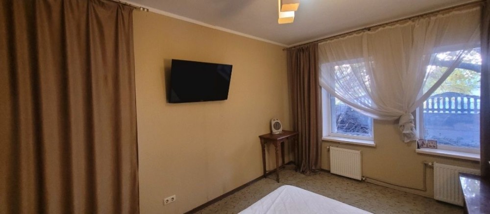 Двор общий с соседкой, у каждого своя половина. Сдают семейной паре или одному человеку , без животных! В доме два выхода, коридор, санузел, отдельная спальня и большая гостиная с диваном, совмещённая с кухней. Газовый котёл. Вода и канализация центральные.