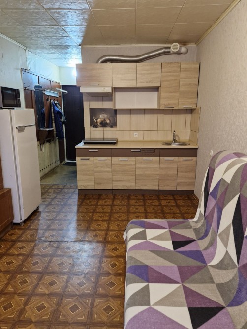 Комната большая, просторная, светлая. Новая кухня, большой санузел, ванна. Хороший большой диван, холодильник, микроволновая чечь, стиральная машина, интернет, кабельное ТВ.