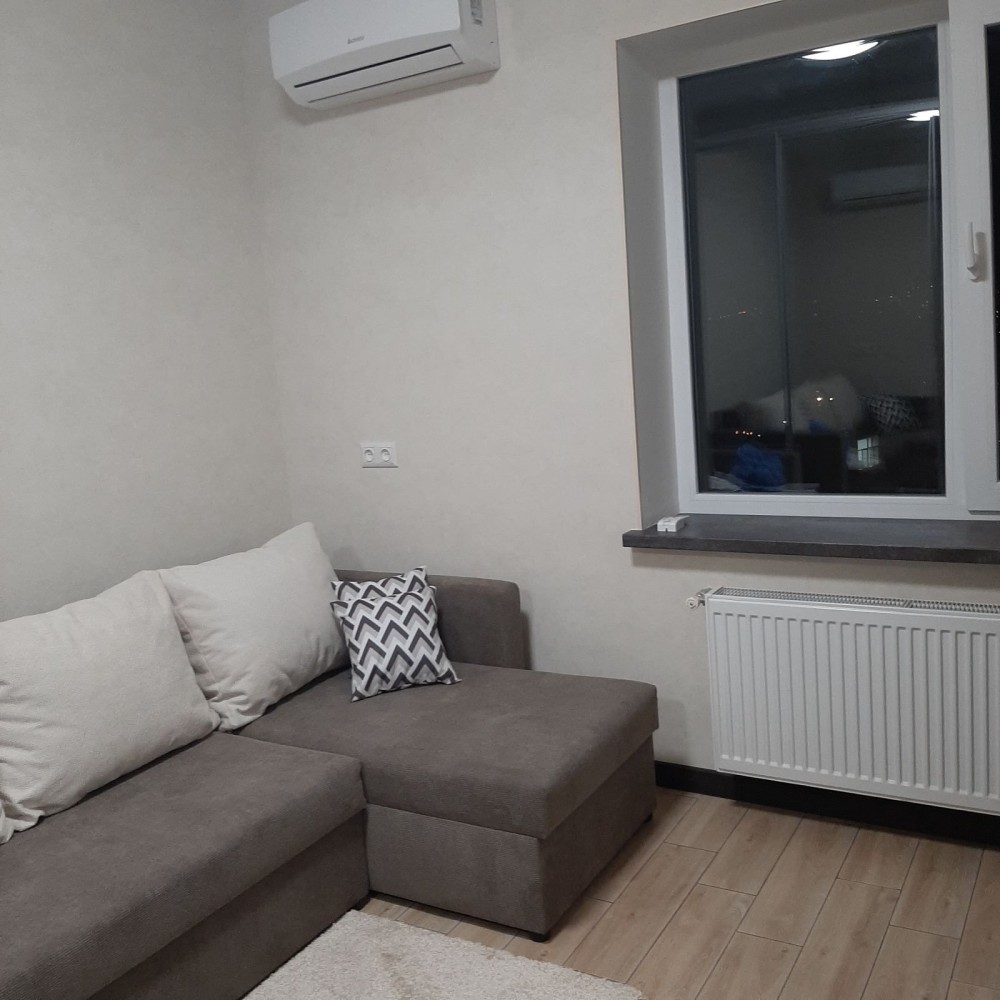 Перша здача. Пропонується в оренду сучасна квартира в новобудові біля м. Житомирська (Берестейський пр-т, 131а). В будинку є генератор (завжди є опалення, вода та працює ліфт). Квартира укомплектована всіма необхідними меблями та технікою. У кімнаті - двоспальне ліжко, розкладний диван, письмовий стіл, кондиціонер, телевізор, велика шафа для одягу. Санвузол суміщений, душова кабінка. Тихий двір, велика парковка. До метро Житомирська - 10 хвилин пішки. Вартість 16000 грн. Умови оренди: оплата за два місяці та послуги рієлтора (50%). комісія: 50%