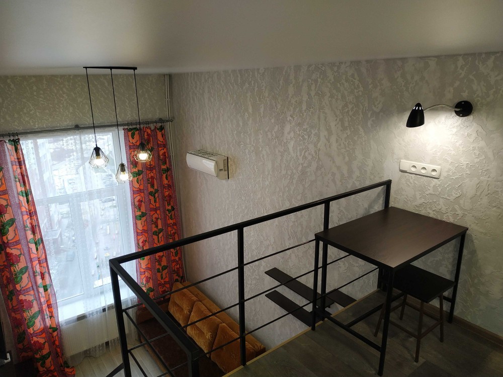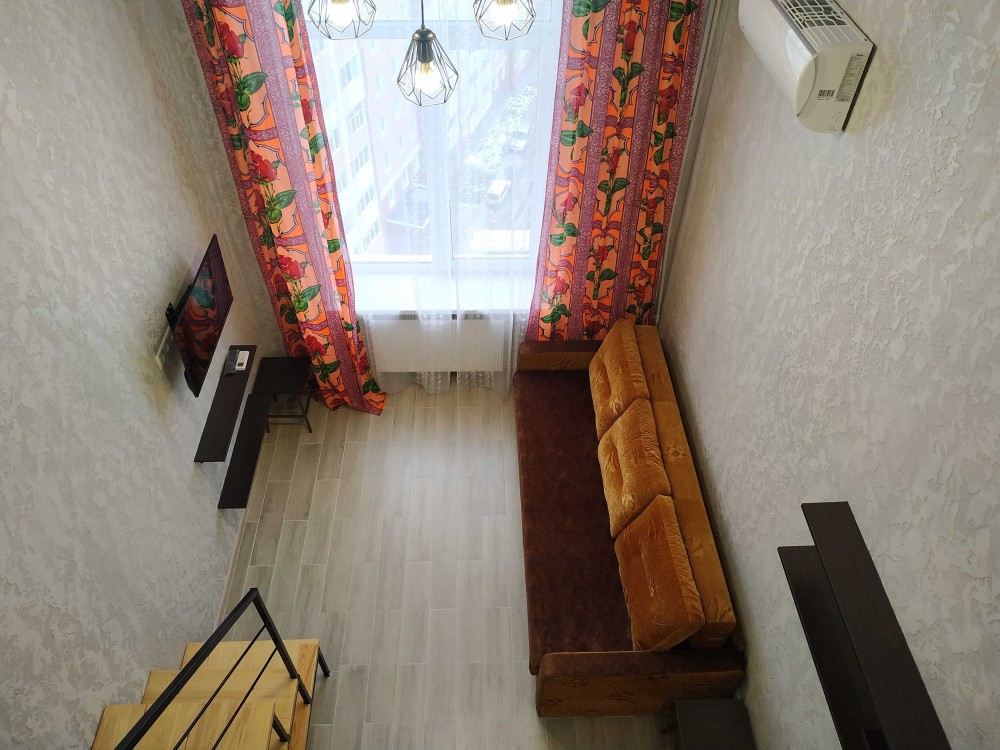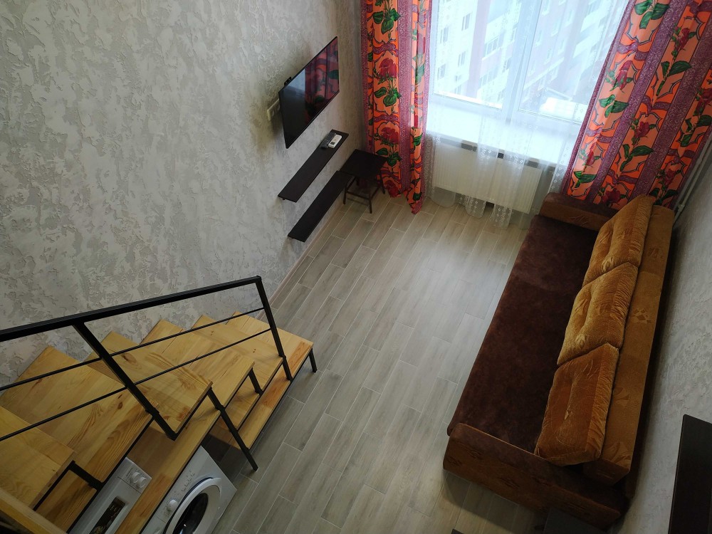 Сдам свою двухуровневую однокомнатную квартиру на Воробьевых горах, пер.Шевченковский,д.38. 11 этаж двенадцатиэтажного дома. Три лифта, охрана во дворе, чистая ухоженная территория и подъезд.
