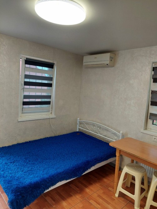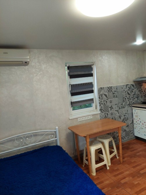 Своя квартира-студия, выделенная полностью автономная часть частного дома, общая площадь 15кв.м. свой холодильник, газовая плита, душ и туалет совмещённый. Wi-Fi, солнечные панели отопление и горячая вода круглосуточно. Договор на 2 месяца. Проживание 3500, коммунальные 500 , электричество по счётчику. Залоговая сумма 2000 грв. Лестница на 2этаж винтовая, вход с балкона. Только звонить Татьяна 09******49