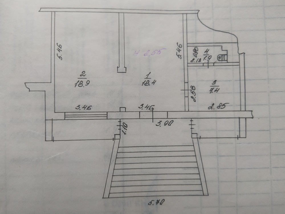 • Площадь кухни 7.4 м2