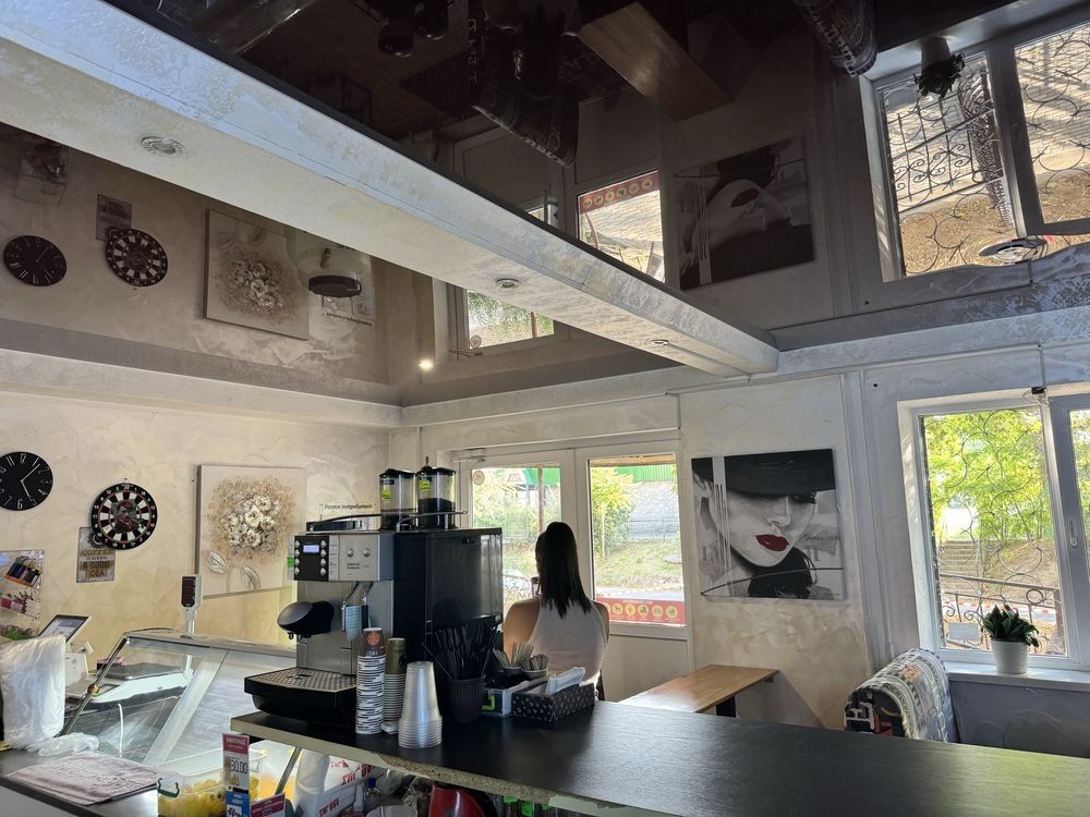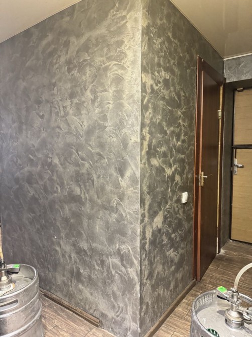 В помещении полы -кафель , стены -декоративная штукатурка, потолки -натяжные!