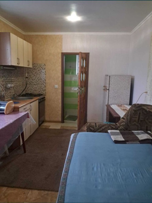 Флигель планировка студия 1 ком и санузел. МПО, хорошее жилое состояние, есть необходимая мебель и техника для жизни. Двуспальный диван, стол, стулья шкаф для одежды. Кухонная мебель. Горячая вода бойлер, есть кондиционер. Отопление электрическое. Есть генератор.Есть небольшой подвал на случай тревоги. Заезд авто во двор. Расщитано для 1-2 человек. Оплата первый месяц + залог при выселении возвращается и услуги реэлтора единоразово.Звоните на смс не отвечаю не читаю. В субботу не работаю.