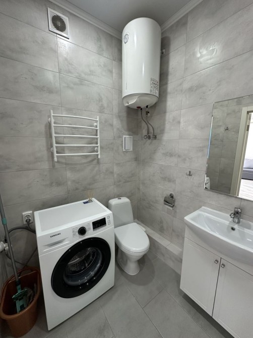 Укомплектована полностью для комфортного проживания :WiFi, Smart TV, фен , утюг пылесос , холодильник , кондиционер зима лето, индукционная плита , микроволновая печь , духовка , стиральная машина , посудомойка ,душевая кабина