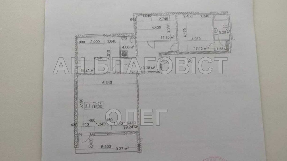 площа: 116,0 м2 \ Житлова 74,5 м2 \ кухня 12,8 м2;