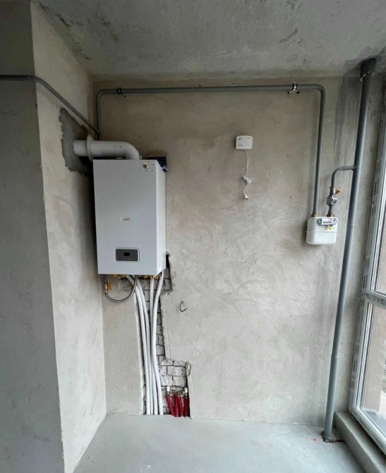 Наповнення квартири: штукатурка, стяжка, вхідні двері, всі лічильники ( світло, газ, вода), двухконтурний котел, радіатори, електрика розведена.