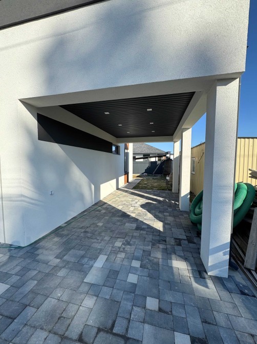 На території огорожа, навіс для авто, ворота, місце під зону відпочинку та дитячий майданчик