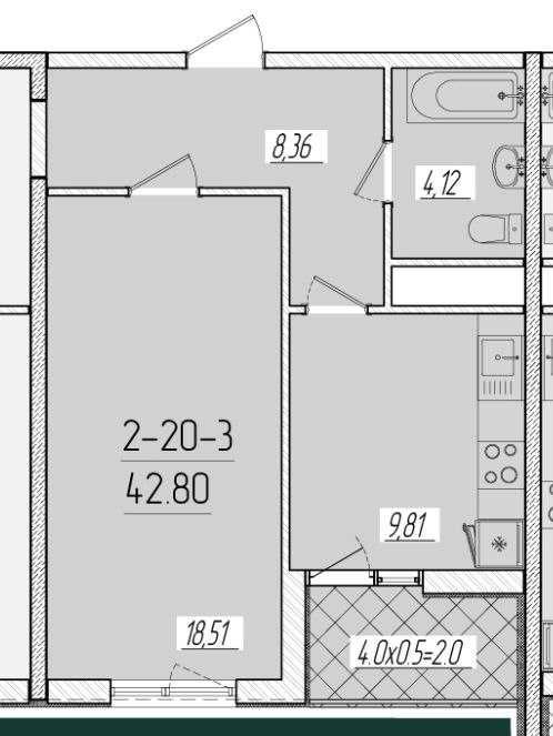 • Загальна площа 42 м2