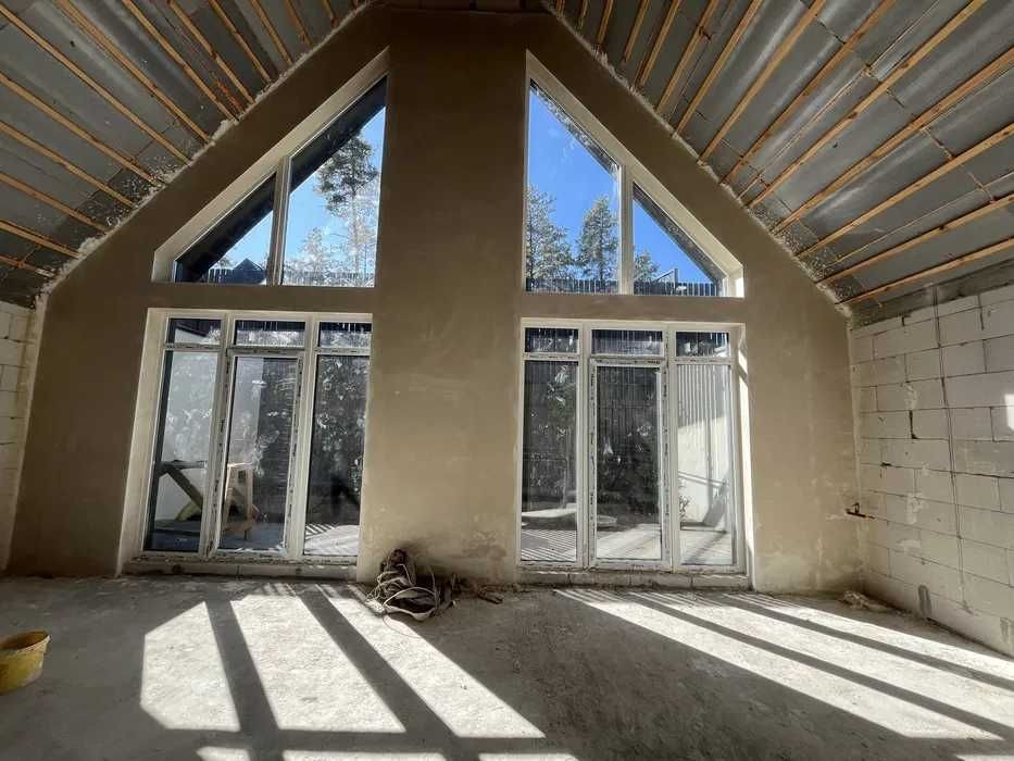 Фундамент: Стрічково-свайний + бетонна плита (забезпечує надійну та стійку основу).