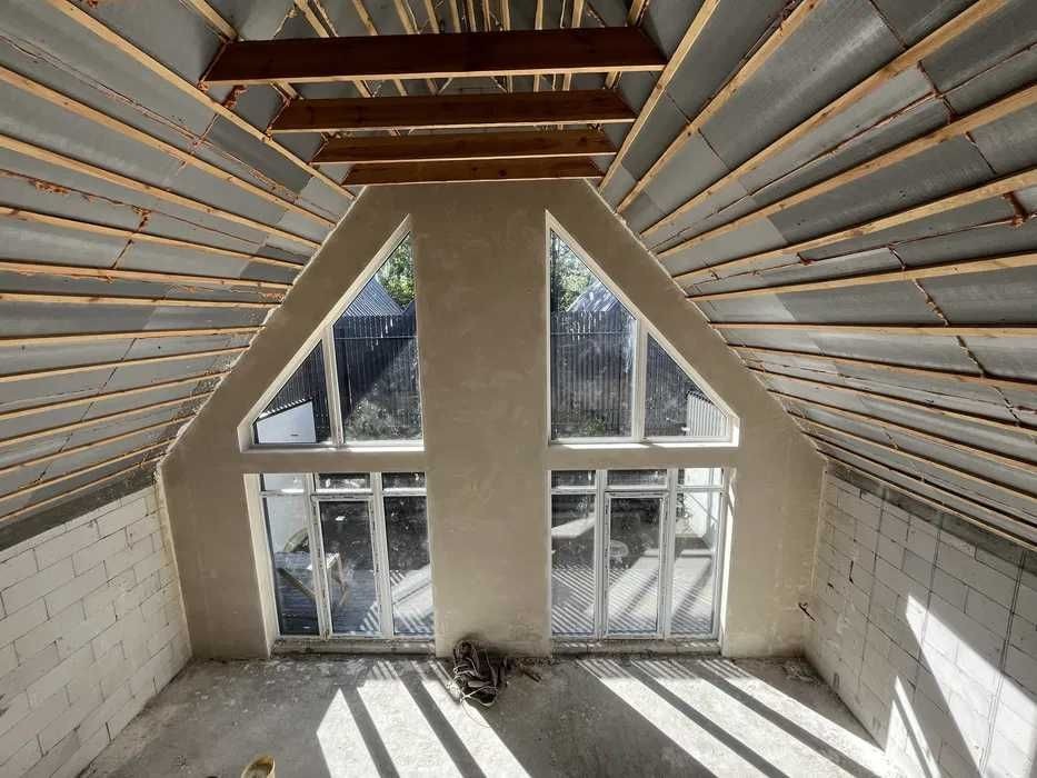 Дах: Утеплений мінеральною ватою 200 мм + екструдований пінополістирол 20 мм (подвійне утеплення для максимального теплозбереження).