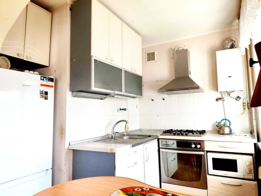 • Залишається: меблі та техніка (витяжка, плита, духовка, мікрохвильова, холодильник, пральна машина)
